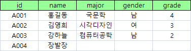 * 예제문은 아래의 <학생> 테이블을 기반으로 작성했다.