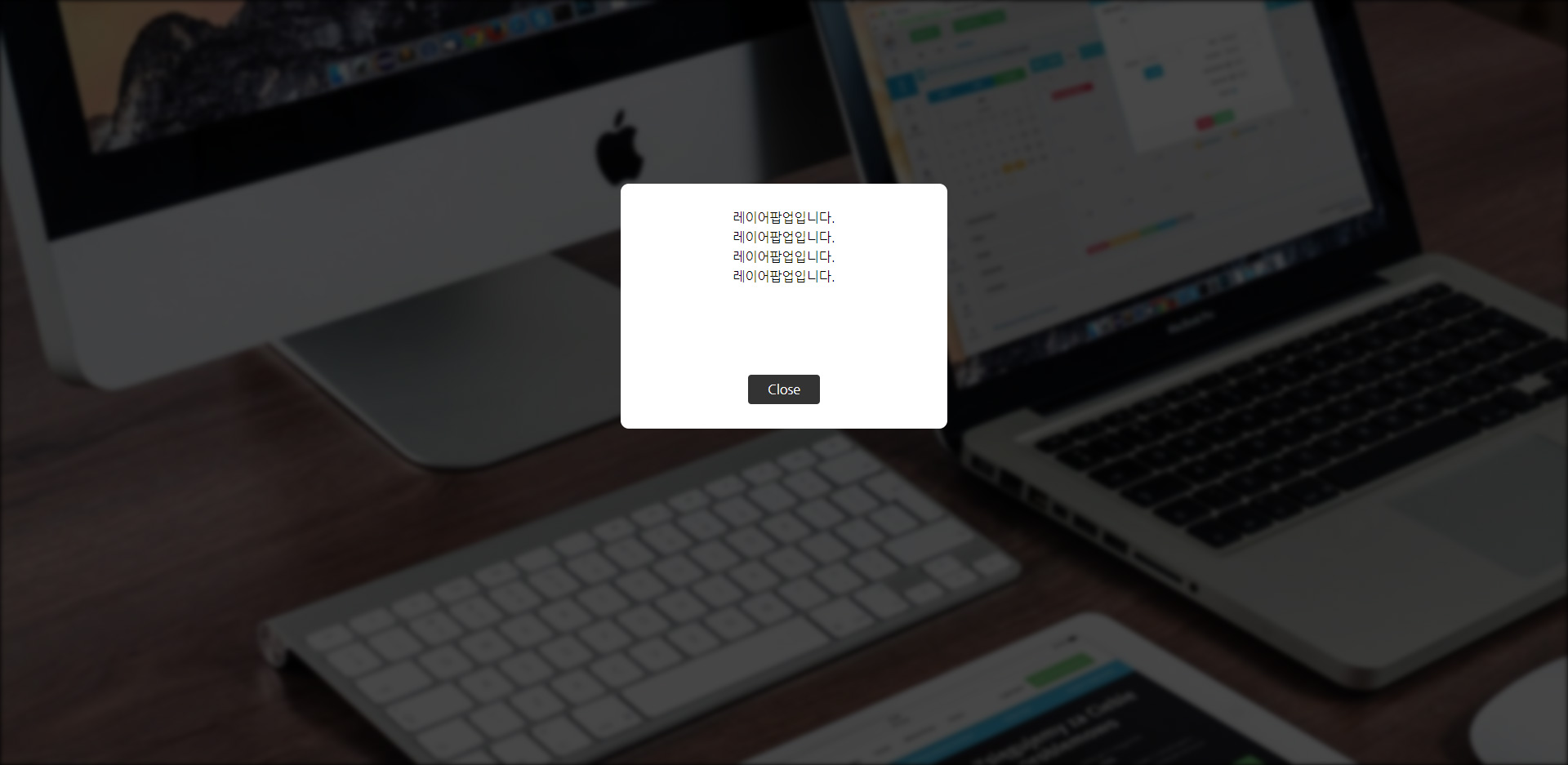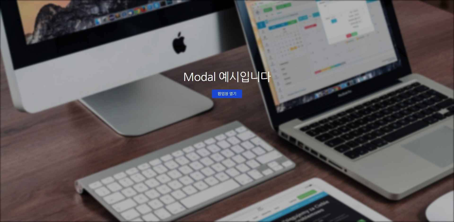 jQuery를 이용한 Modal 을 제작해보았다. "보여진다", "감춘다" 두 가지 직관적인 기능만 구현하면 되기 때문에 jQuery 문법만 구조만 이해하면 쉽게 작성할 수가 있다. Modal은 활용도가 높기 때문에 꼭 익혀두길 추천한다.