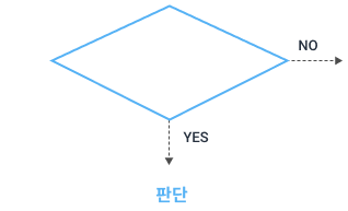 마름모는 데이터의 유효성을 체크해서 특정 조건에 부합하는가 부합하지 않는가를 판단해서 흐름을 분기한다. 분기는 YES, NO 단 두 가지이다. 예를들어 로그인 시 아이디나 비밀번호의 유효성을 체크하는 경우에 쓰일 수 있다.