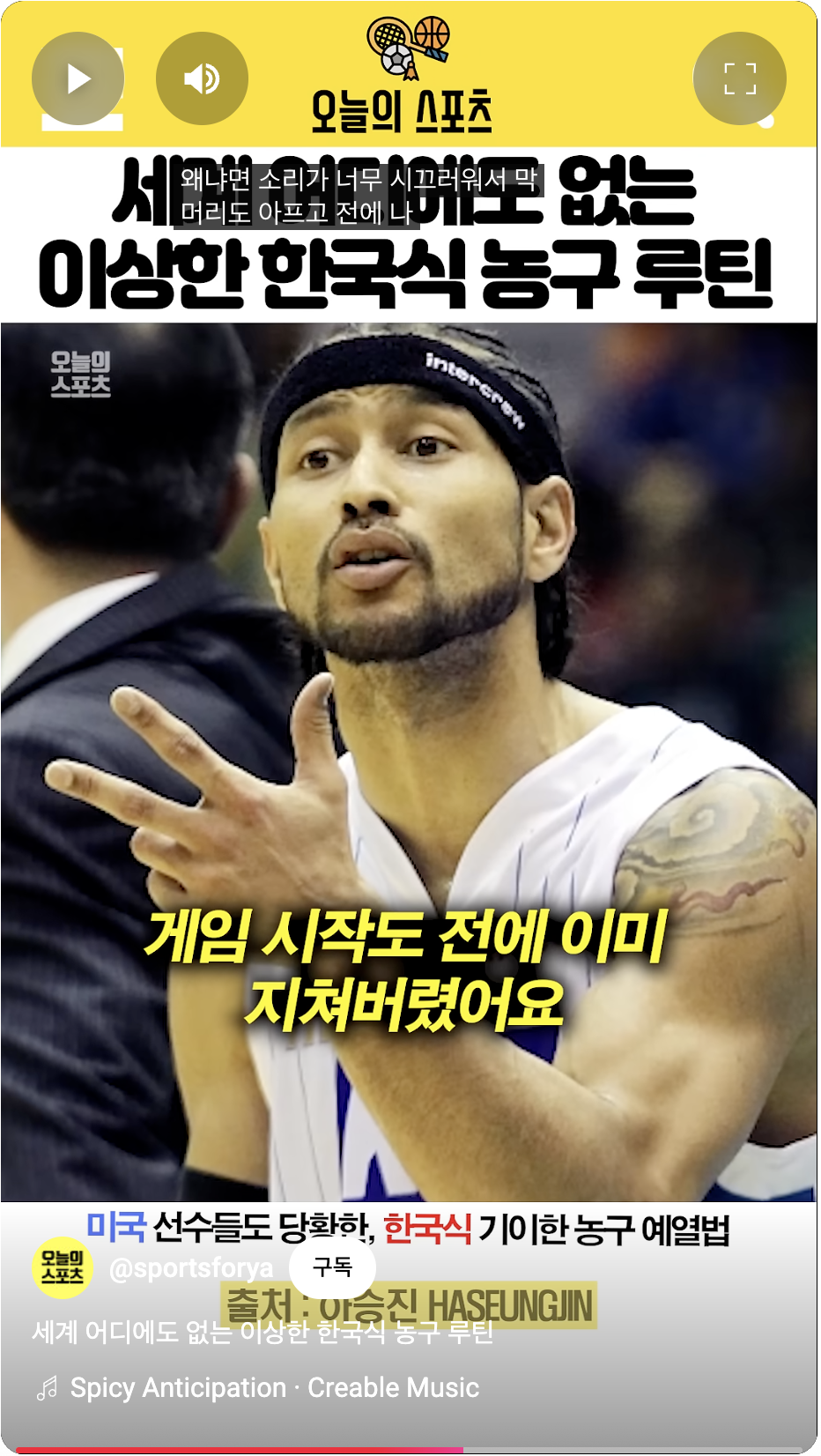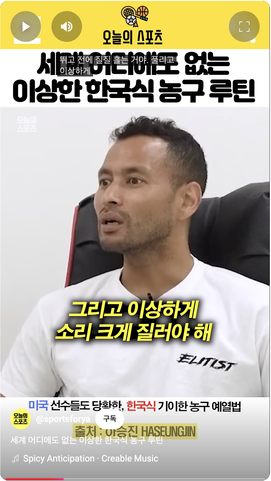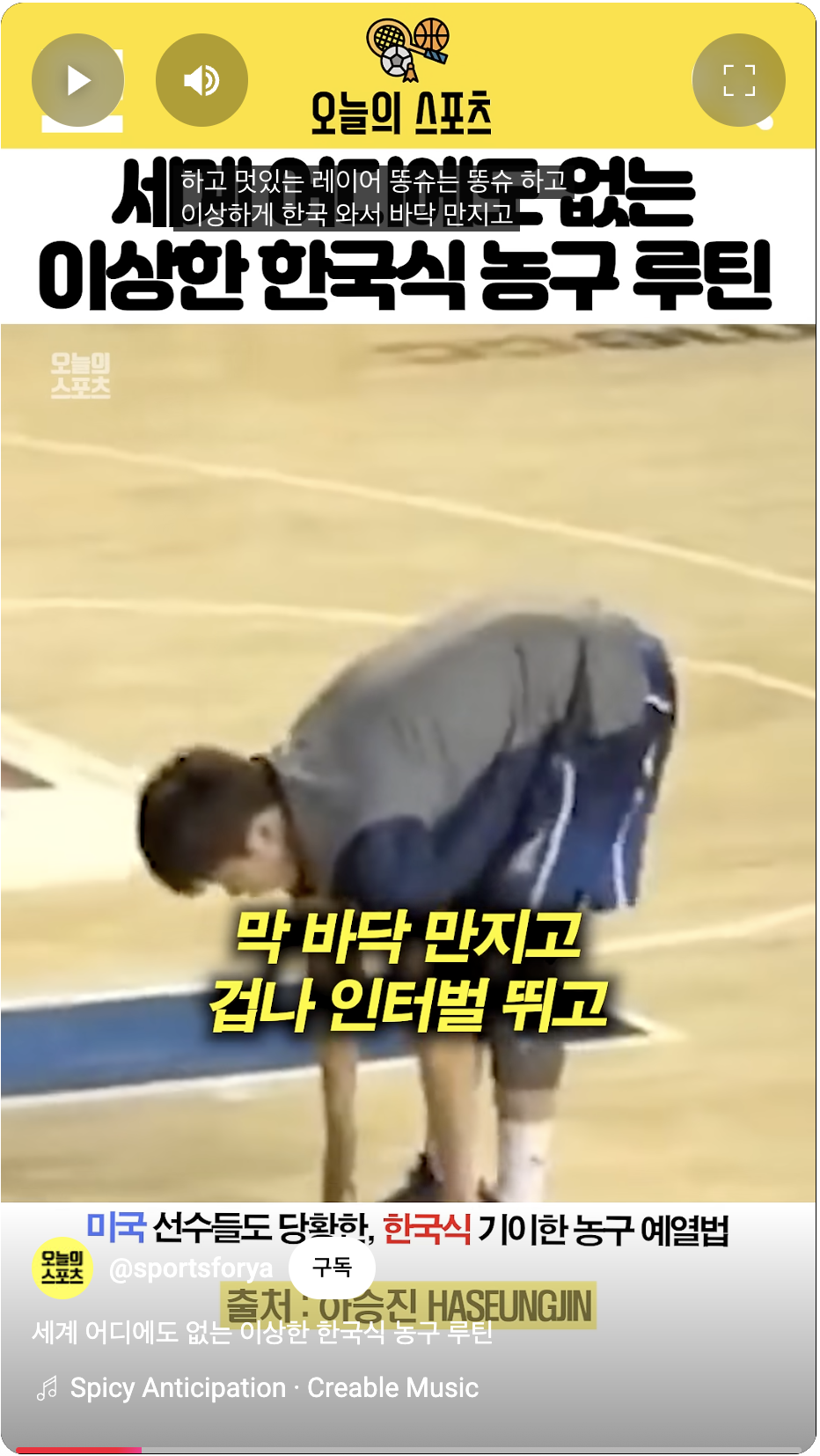외국에선 선수들이 경기 전에 쿨하게 슛하며 몸 푸는데 한국에선 오버하고 이상하게 소리를 꽥꽥 질러가며 보여주기식 운동을 한다고 한다. 그걸 보던 미국 선수들이 '쟤네들 뭐하냐'라고 비웃어서 부끄러웠다고 한다.