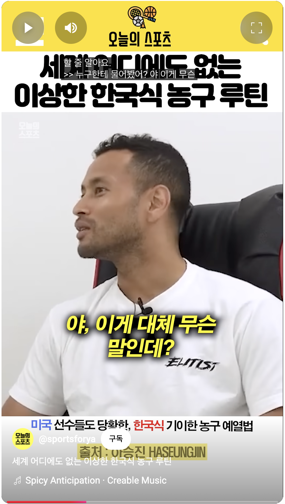 전 농구선수 하승진과 전태풍의 대화인데 미국 혼혈이자 귀화선수인 전태풍이 K-농구문화의 이상함을 이렇게 설명했다.